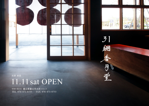 そこで、新店舗は地名の富山市古沢から「古沢 本店」と名付けまして、初代から引き継がれてきた「常に創業」の気概を胸に、皆様に愛される「越中富山の菓子屋」を目指して取り組んで行きたいと考えております。