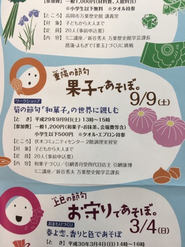 伏木コミュニティセンターさんにて和菓子作り体験を開催していただきます!
