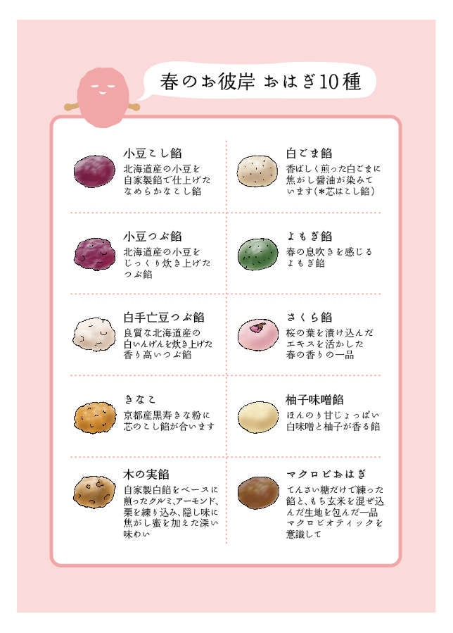 これら10種類のおはぎセットはお彼岸中日限定で調製いたします。