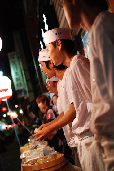 今年は初めての試みで、踊りの街流しがある日に開店しました。