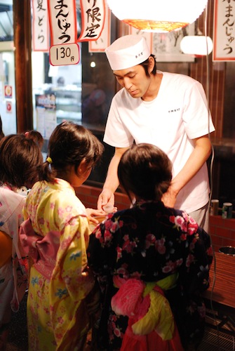 可愛いお子さんのお客様は、涼水まんじゅうがお気に入り♪