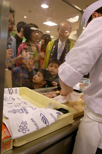 じっくりと当店の上生菓子実演をご覧いただきました。