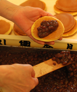 つやつや大粒の粒餡が自慢の、どらやき「まめ蔵」