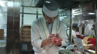今回は特別に和菓子職人が三人並び、販売と実演をするという企画で