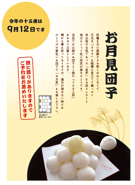 十五夜の晴れを祈って、スタッフ一同で団子を調製いたします!