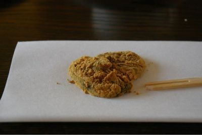 練りたての本蕨粉100%の本蕨餅の試食。