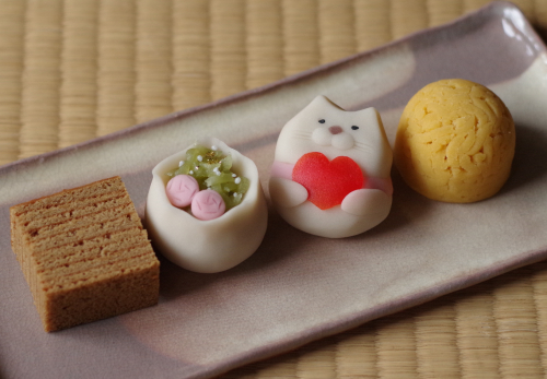 溢れる思いを抱きしめた猫、煉切製「想い」