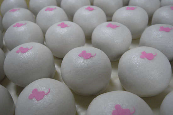 これは干支の上用まんじゅう。例年はクラシックな図案を提案してたのですが今年はポップに。