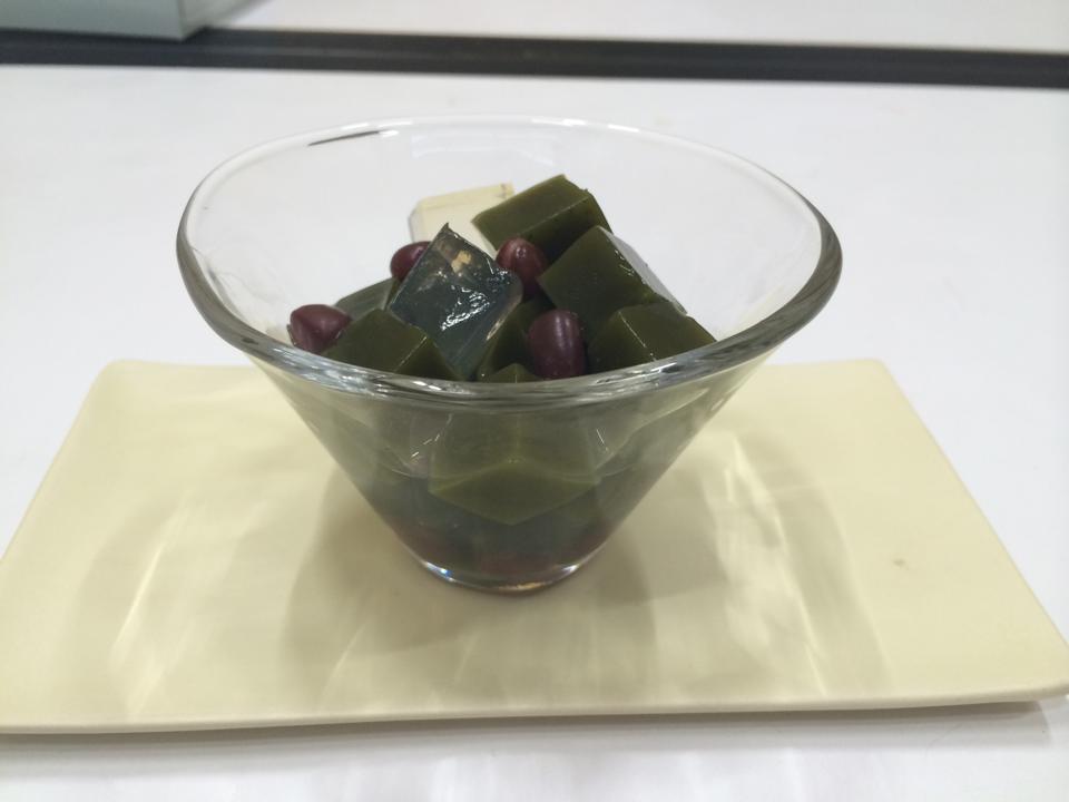 京都の茶舗から仕入れる玉露を寒天に練り込み