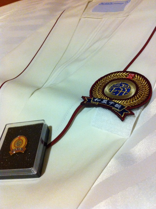 今回の認定でいただいた「エンブレム付きのユニフォーム」と